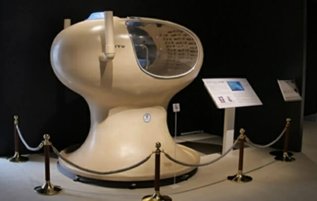 1970년대 산요전기가 처음 공개했던 인간형 세탁기는 사용자가 계란형 욕조에 앉으면 자동으로 뜨거운 물이 채워지고 초음파를 이용해 몸을 씻겨주는 방식으로 큰 주목을 받았다.