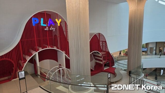 3~4층에 위치한 곡선형 플레이월 ‘업스테어’도 아이들을 위한 공간이다. 아이들이 구조물을 따라 공간 곳곳을 탐색하며 마음껏 뛰어놀 수 있다. 안전을 위해 상주 직원도 배치한다는 설명이다.