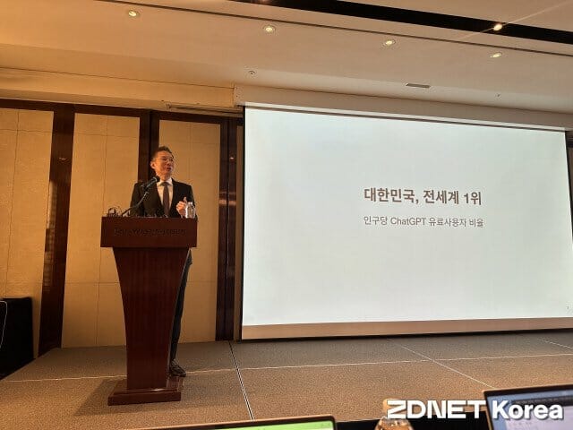 김 대표는 챗GPT 사용량이 빠르게 증가하며 일상 속으로 스며들고 있다는 점을 재차 강조했다. 그는 "인구당 챗GPT 유료사용자 기준으로 전 세계 1위를 기록했다"며 "AI의 일상화가 이미 일어났다"고 강조했다.