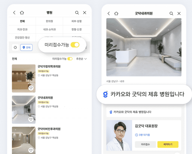 또 카카오맵과 카카오내비에서도 굿닥 제휴 병원을 찾아볼 수 있다. 이용자는 두 서비스에서 주변 병원을 검색한 뒤 바로 진료 미리접수와 예약을 진행할 수 있다.