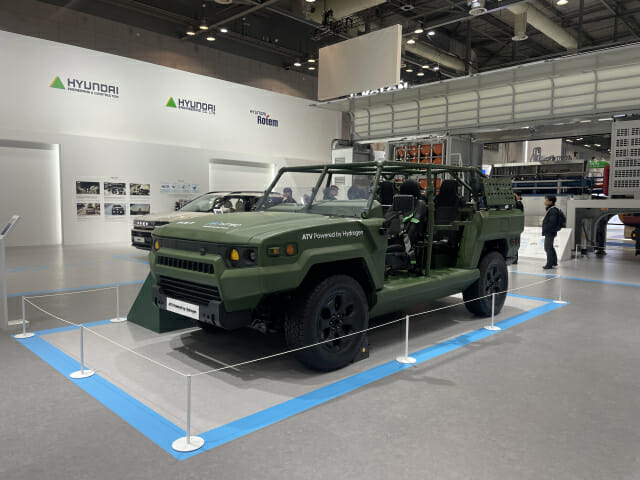 이번 전시에서는 '수소 경전술차량(ATV)'도 만나볼 수 있다. 수소 경전술차량은 수소 연료전지를 동력원으로 하는 친환경 경전술차량으로, 기존 내연기관 차량보다 발열과 소음이 적으며, 항공 수송이 가능할 정도로 차체를 경량화 설계한 것이 특징이다.