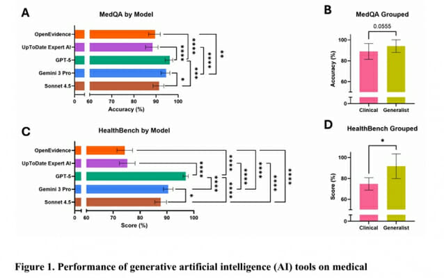 해당 논문에 따르면, 뉴욕대학교 병원 신경외과 연구팀은 의사들이 많이 쓰는 두 가지 의료 전문 AI인 오픈에비던스와 업투데이트 전문가 AI를 일반 AI들과 비교했다. 비교 대상은 GPT-5, 제미나이 3 프로, 클로드 소네트 4.5였다. 오픈에비던스는 미국 의사 40%가 쓰고 있고 기업 가치가 35억 달러(약 5조 원)에 달한다. 업투데이트 전문가 AI는 미국 주요 병원 70%가 도입했다.