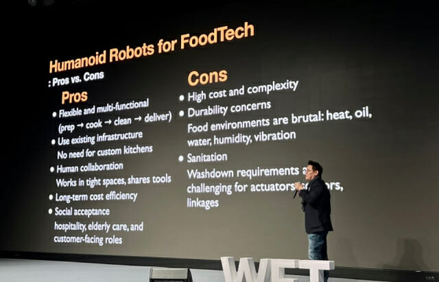 홍 교수는 휴머노이드 기술의 가능성을 인정하면서도, 단점과 현실적 제약을 짚었다. 아직은 너무 비싸고 복잡하다는 점, 세척이 어려운 점 등 주방 특성 대응에 기술적 난제가 많다는 설명을 덧붙였다.