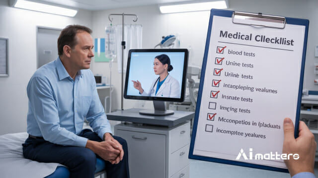 A. AI가 가장 자주 하는 위험한 실수는 필요한 검사나 치료를 안 하라고 말하는 것입니다. "괜찮아요, 더 검사 안 해도 돼요"라고 하면서 정작 꼭 해야 할 혈액 검사나 재검진을 빠뜨립니다. 심각한 실수 10건 중 8건이 이런 유형입니다. 잘못된 약을 추천하는 실수보다 훨씬 많고 위험합니다.