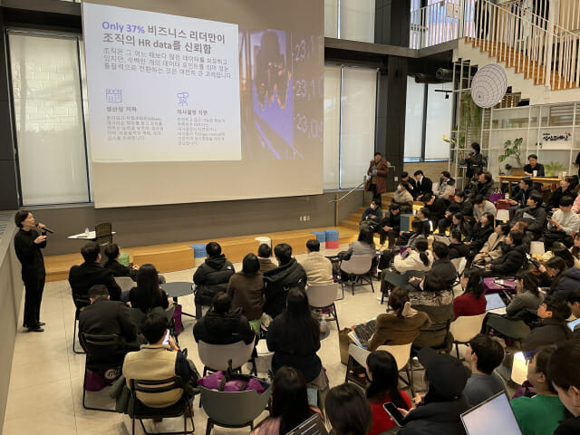 KT 나스미디어 임익성 책임, 채용트렌드 저자 윤영돈 코치, 한온시스템 이선민 팀장, 두산 강혜원 수석 등 총 50명의 현직 HR 실무자가 무대에 올랐다. 일부 인기 세션에서는 좌석이 부족해 스탠딩으로 강의를 듣는 참가자들이 생길 정도로 현장 참여열기가 뜨거웠다.