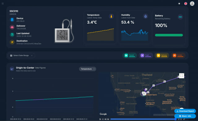 특히 수집된 모든 물류 데이터는 블록체인에 자동 기록되어 위·변조가 원천적으로 불가능하다. 기존 수기 관리 방식에서 발생하던 입력 오류나 누락을 방지하고 누가 언제 어떤 환경에서 물품을 관리했는지 투명하게 추적할 수 있어 글로벌 바이오 물류 시장에서 가장 중요한 '신뢰도' 문제를 기술적으로 해결했다는 평가다.
