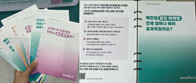 부스 한켠에는 관람객들이 직접 목소리를 낼 수 있는 메모 공간도 마련됐다. 여기에는 "배민 아카데미 교육장을 좀 더 늘려주세요", "고객센터 개선해주세요", "파트너와 직접 소통할 수 있게 해주세요" 등 다양한 의견이 쓰여져 있었다.