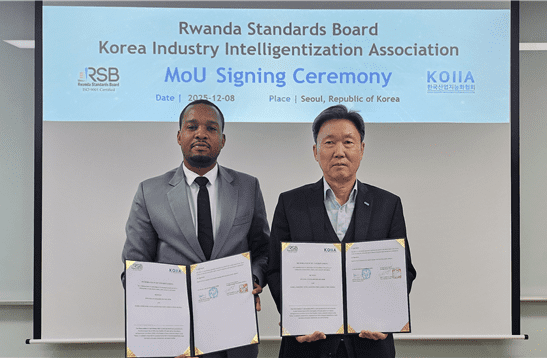 한국산업지능화협회는 르완다 표준청(RSB)과 '산업 디지털 전환 기술센터' 구축을 위한 업무협약(MOU)을 체결했다고 8일 밝혔다.