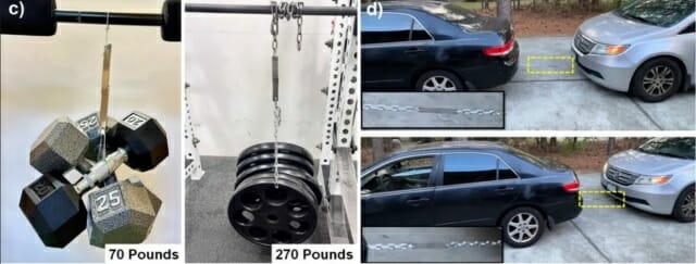 연구진은 두 개의 스테인리스 스틸 판을 붙여 접착력을 시험했다. 최대 123kg의 무게를 매달아도 두 판은 단단히 접착됐으며, 이 접착된 조각들을 사용해 4도어 세단 차량을 약간 경사진 길에서 끌어올리는 것도 가능했다. 이는 해당 폴리머의 접착력이 시중 접착제와 동등하거나 더 강하다는 것을 의미한다.