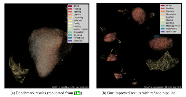 연구팀은 AI 프로그램을 만들어서 박쥐 소리 패턴만 가지고 그들이 무슨 행동을 하는지 예측했다. 이 AI는 박쥐가 사용한 소리의 종류, 소리가 이어지는 방식, 패턴의 반복 정도 등 다양한 정보를 분석했다. 그 결과 정확도를 나타내는 점수가 매우 높게 나왔다.