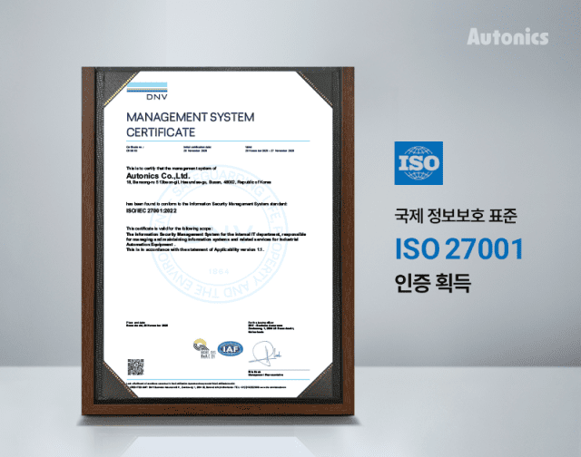 산업 자동화 전문 기업 오토닉스는 정보보호 경영시스템 국제표준 ISO 27001 인증을 획득했다고 10일 밝혔다.