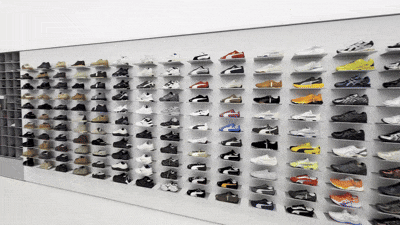 안쪽으로 더 들어오자 무신사 스토어의 상징처럼 자리 잡은 슈즈 월이 보였다. 수백여 개의 신발을 한눈에 보여주는 벽면형 진열대가 자연스럽게 고객의 시야에 걸리는 구조였다.