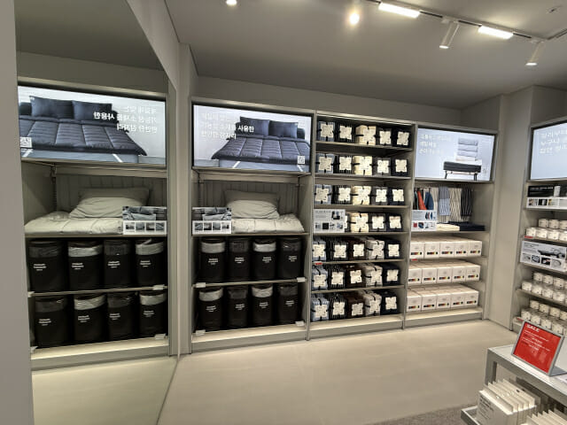기존 무신사 스토어가 패션 중심 매장이었다면, 용산점은 생활용품과 뷰티까지 확장하며 매장의 성격이 달라졌다. 의류뿐만 아니라 침구·타월·디퓨저 등 생활용품을 포함한 ‘무신사 스탠다드 홈’, 스킨케어·메이크업 제품을 다룬 ‘스탠다드 뷰티’까지 대폭 확대 구성됐다.