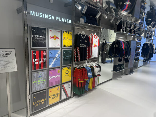 입구에 들어서면 가장 먼저 눈에 들어오는 공간은 팝업 전용 존이다. 기자가 방문했을 때는 축구 유니폼을 모은 무신사 플레이어 팝업이 운영되고 있었다. 회사 관계자는 “이곳은 한 달 주기로 브랜드와 콘셉트를 전면 교체하는 실험 공간”이라고 설명했다. 회사가 온라인에서 강화해온 콘텐츠 기반 큐레이션을 오프라인에서도 구현하겠다는 전략이다.