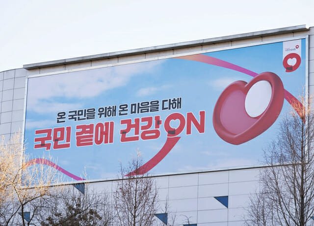올해 새롭게 선보인 행복글판은 2025년 공익캠페인 슬로건인 ‘국민 곁에 건강 ON’을 주제로 제작했다. ‘온 국민의 온전한 건강을 위해 국민건강보험이 항상 켜져(ON)있다’는 뜻이며, 청량한 하늘 위로 건강보험을 의미하는 붉은색의 하트 스위치와 모두를 잇는 리본이 유연하게 너울거리는 모습을 담았다고 한다.