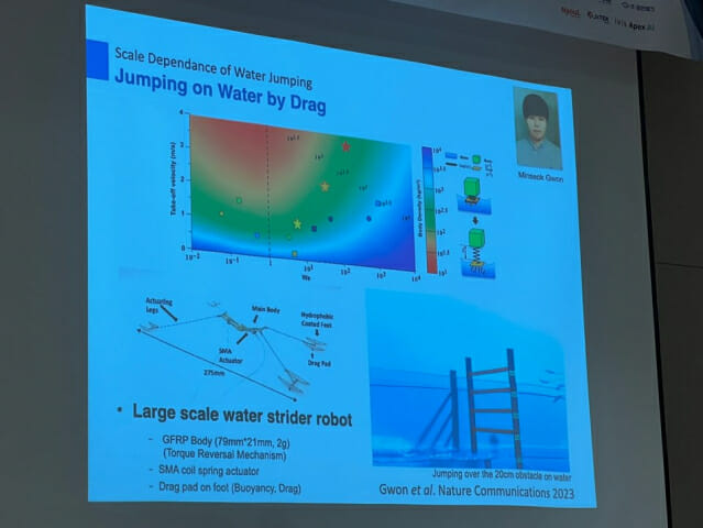 발표의 하이라이트는 실제 곤충을 모사한 소형 로봇 사례였다. 고 교수는 소금쟁이 로봇 연구를 소개하며, 로봇이 오히려 자연을 이해하는 과학 도구가 됐다고 설명했다.