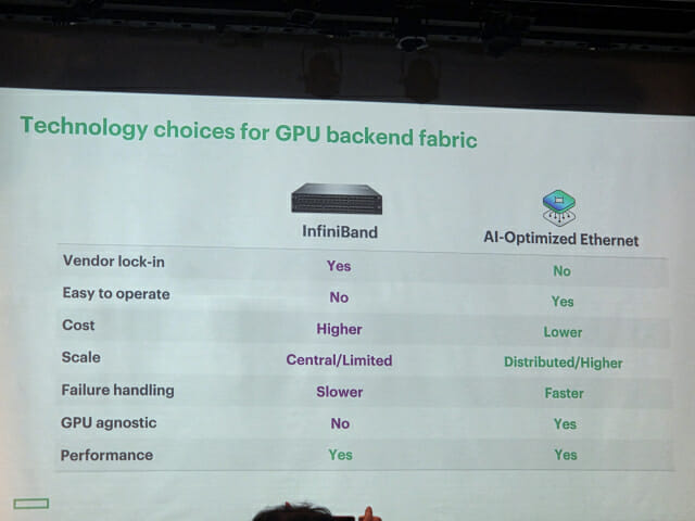 HPE가 AI 데이터센터 백엔드 네트워크의 해법으로 '오픈 이더넷'을 제시했다. 인피니밴드 대비 성능·비용·구축 유연성에서 더 높은 효율을 보이는 만큼 TCO(총소유비용)를 절반가량 낮출 수 있다고 주장했다.