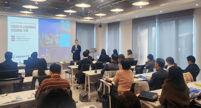아시아나IDT가 지난 11일 서울 종로구 본사에서 '플랜투두와 함께하는 산업안전세미나'를 개최했다. 이번 세미나에는 제조·건설 분야 고객사 및 관공서 등 관계자 40여 명이 참석했다.