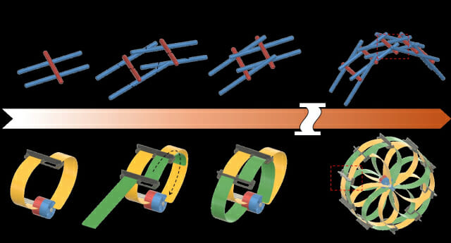 연구팀은 이러한 문제를 해결하기 위해 복잡한 기계 구조 대신 종이접기(오리가미) 구조와 소프트 로봇 기술을 결합한 새로운 전개식 바퀴를 만들어냈다. ‘다빈치 다리’의 서로 맞물리는 구조를 응용하고, 우주에서도 잘 버티는 탄성이 좋은 금속판을 종이접기 방식으로 접어 바퀴 모양을 만들었다.
