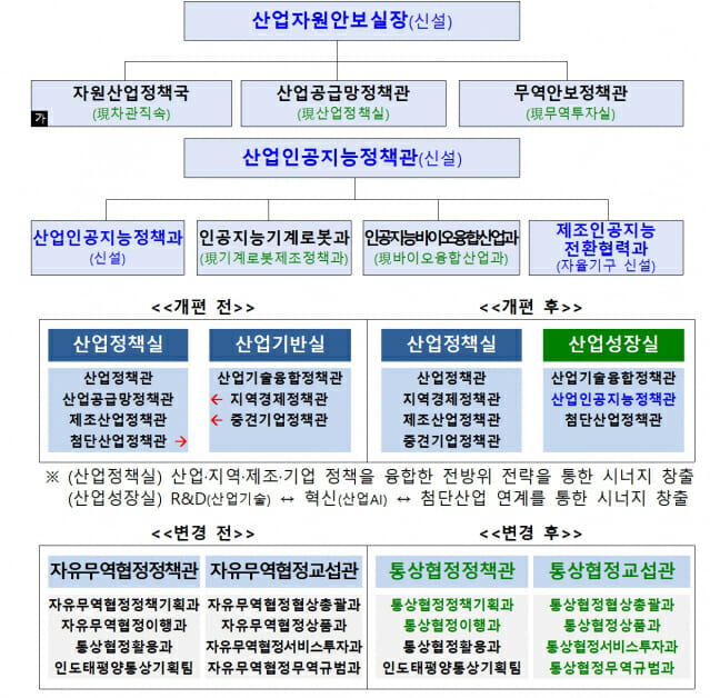 산업부에 경제·산업안보 정책을 총괄·조정할 ‘산업자원안보실’과 제조업 AI 대전환(M.AX)을 책임질 ‘산업인공지능정책관’이 신설된다.