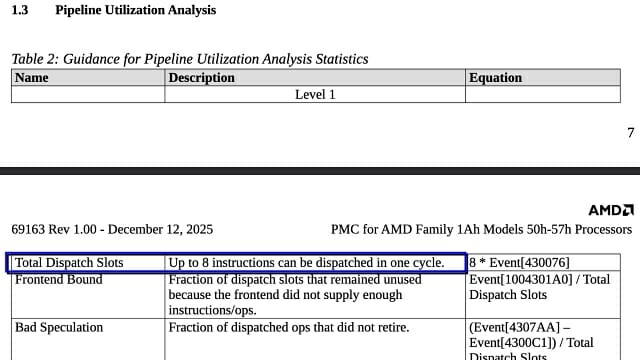 문서에 따르면 젠6는 현행 아키텍처인 젠4·젠5 대비 명령 처리 폭을 확장한 새로운 코어 구조를 적용했다. 가장 큰 변화는 실행 명령어를 동시에 불러와 처리할 수 있는 디스패치(dispatch) 능력의 확대다.