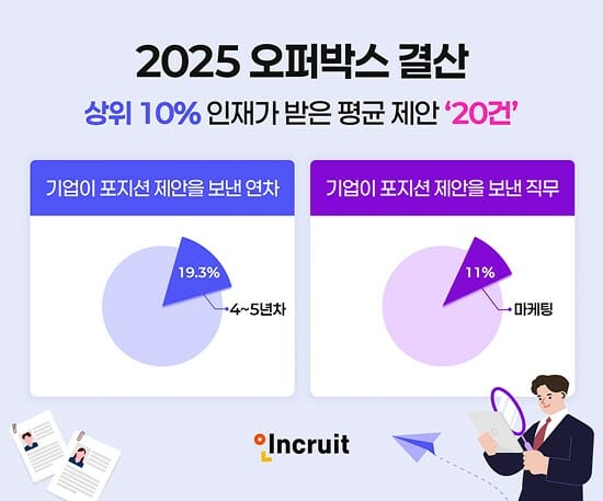 인크루트는 2025년 1월부터 11월까지 ‘오퍼박스’를 통해 이뤄진 포지션 제안을 분석, 올해 채용 시장의 데이터를 분석했다.