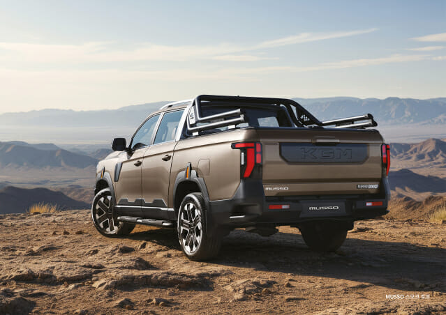 KG모빌리티(KGM)가 프로젝트명 'Q300'으로 개발해 온 차세대 픽업의 공식 차명을 '무쏘(MUSSO)'로 확정하고, 외관 이미지를 26일 공개했다.