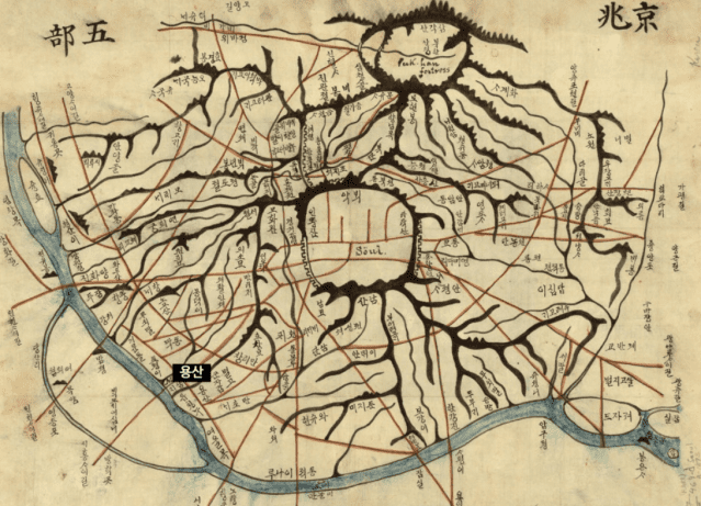남산 아래 인왕산 줄기가 마치 용의 형상한 진짜 별악지상의 땅이 보였다. 바로 용산(龍山).