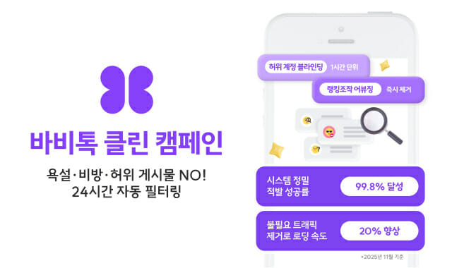 바비톡은 2020년부터 플랫폼 내 과도한 홍보나 비방 등의 비정상 활동을 지속적으로 모니터링하며 정보의 신뢰도를 높이기 위한 ‘클린캠페인’을 꾸준히 운영해 왔으며, 최근 사용자 보호와 정보 투명성에 대한 요구가 높아짐에 따라 이를 한층 정교하게 발전시켰다.