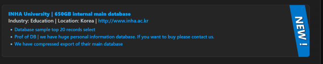 건라는 인하대 데이터를 탈취해 일부 샘플을 공개하며 협박을 하고 있는 것은 물론, 자신의 다크웹 사이트에 탈취 데이터를 판매하고 있다. 건라는 "우리는 (공개한 것보다)더 많은 개인정보 데이터베이스를 갖고 있다"며 "만약 당신이 이 데이터를 구매하고 싶다면, 우리에게 연락하라"고 밝힌 상태다.