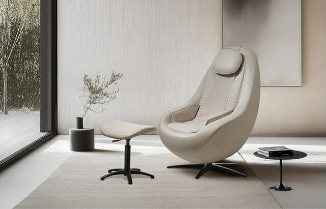 3단계 온열 안마볼과 온열 패드는 온열 구간을 엉덩이부터 등까지 넓혔다. 외관은 프리미엄 인조가죽 소재와 다이아몬드 퀼팅 패턴을 적용했다. 색상은 화이트 베이지와 블랙 두 가지다. 빌트인 터치 리모컨, 블루투스 스피커, C타입 충전 포트도 갖췄다.