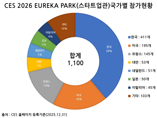 새해 초 미국 라스베이거스에서 열리는 세계 최대 IT·전자 전시회 CES 2026에 한국 기업 약 850여개가 참가한다. 참가 기업 수는 전년보다 줄었지만, 국가별 참가 순위는 미국과 중국에 이어 3위를 유지했다.