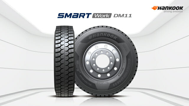 스마트워크 DM11은 온·오프로드 주행 조건에 최적화된 프리미엄 후륜용 타이어로, 한국타이어의 최첨단 트럭·버스용 타이어 기술 '스마텍' 기술이 반영된 제품이다.