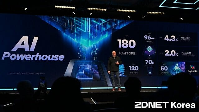 짐 존슨 총괄은 "메모리 96GB 탑재시 최대 700억 매개변수(패러미터) 규모의 대형 언어 모델(LLM)을 로컬 환경에서 실행할 수 있다"고 설명했다. 또 마이크로소프트, 어도비, 줌 등 주요 소프트웨어 파트너들과 협력해 AI PC 생태계를 확장하고 있다고 덧붙였다.