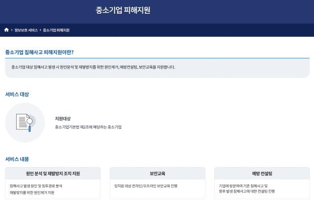 특히 중소기업 침해사고 피해지원 서비스를 운영하고 있으며, 해킹 공격을 입은 중소기업을 대상으로 직접적인 지원을 하고 있다