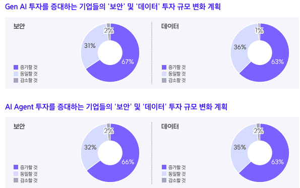 실제로 이번 조사에서 Gen AI 투자를 늘리겠다고 답한 기업 중 67%는 보안 투자를, 63%는 데이터 관련 투자를 함께 늘릴 계획이라고 응답했다.