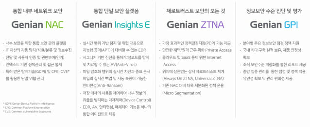 제로트러스트 보안 솔루션 ZTNA 역시 지니언스의 주요 제품 중 하나다. 금융권 제로트러스트 구축 사례를 통해 미래형 보안 모델의 실제 구현 가능성을 입증했고, 글로벌 제로트러스트 고객 10여 곳을 신규 확보하기도 했다. ZTNA를 중심으로 생성형 AI 활용 환경을 고려한 보안 모델을 제시, N2SF 환경 변화에도 적극 대응할 방침이다. 또 올해 신제품 출시도 준비 중이다. 기존 솔루션과 연계, 보안 운영 효율을 한층 더 높일 수 있는 방향을 모색 중이다."