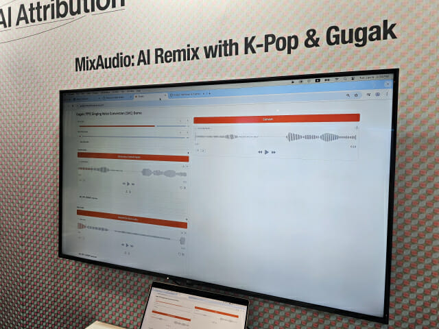 뉴튠은 해당 데이터로 대중가요를 국악 가창 스타일로 변환하는 서비스를 시연하고 있다. 준비된 헤드셋으로 음악을 감상해보니, 같은 멜로디를 국악 스타일로 재구성한 노래가 흘러나왔다.