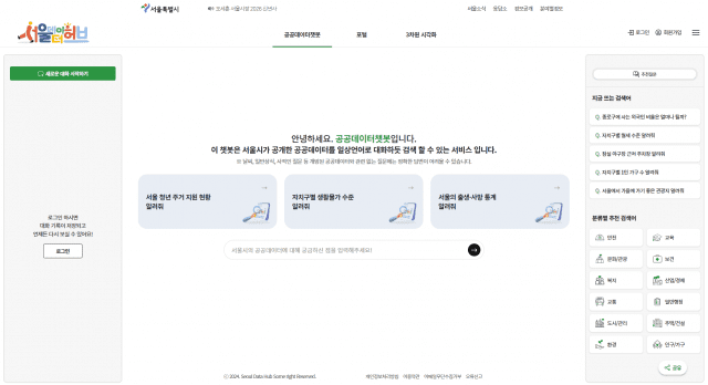 이번 ‘2026년 서울시 빅데이터 서비스 플랫폼 통합 운영 사업’은 데이터를 기반으로 서울시 공무원과 시민이 손쉽게 정보를 활용할 수 있는 체계를 구성하는 것을 목표로 기존 서비스를 개선하고 여러 신규 서비스를 개발한다. 먼저 서울 데이터 허브를 대표하는 서비스 중 하나인 ‘주제 분석 시각화’의 추가 주제 발굴부터 시나리오 기획, 스토리텔링, 시각화 구조 설계까지 전 과정을 체계화하고 인터랙티브 시각화 서비스로 정책에 대한 직관적 이해를 돕는다.