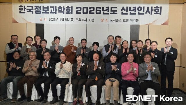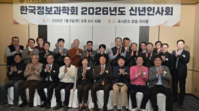 한국정보과학회(KIISE) 2026년도 신년인사회가 8일 오후 서울 광화문 인근 포시즌즈 호텔에서 열렸다. 이날 행사는 문수복 41대 한국정보과학회장(KAIST 전산학부 교수) 인사말과 김형철 SW정책연구소장 덕담, 41대 학회 임원진 소개, 전임 신병석 회장 인사말 순으로 진행됐다.
