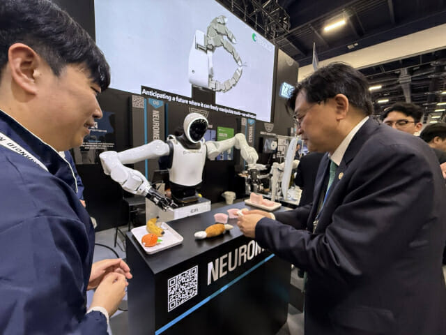 또 두산로보틱스 부스를 방문 자신이 의장으로 있는 피지컬AI글로벌얼라이언스의 완전자율로봇분과장인 김민표 대표와 심도 있는 대화를 나눴다.