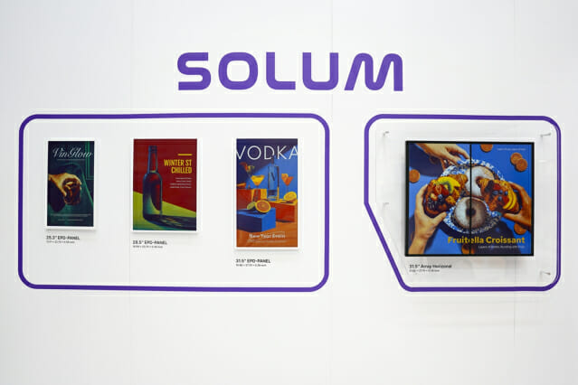 솔루엠은 이번 NRF에서 25.3인치부터 32인치에 이르는 E-페이퍼 디스플레이 라인업을 선보였다. 이 제품군은 백화점, 프리미엄 슈퍼마켓, 가전·가구 매장 등 고가 상품 카테고리의 고시물과 프로모션 보드를 디지털로 대체하는 데 최적화됐다.