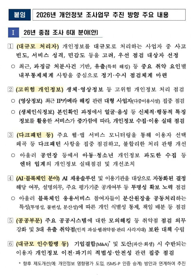 개보위는 이번 '2026년 개인정보 조사업무 추진 방향'을 통해 엄정한 법 집행과 함께 기업의 선제적인 개인정보 보호 투자 확대를 유도하고, 사회 전반의 개인정보 보호 수준을 실질적으로 높여 나갈 방침이다.