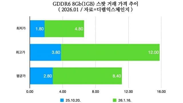 작년 10월 대비 GDDR6/7 원가 3배 상승