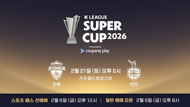 쿠팡플레이는 ‘쿠팡플레이 K리그 슈퍼컵 2026’ 티켓 예매와 생중계를 진행한다고 19일 밝혔다.