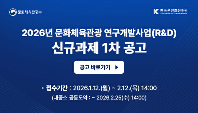 문화체육관광부(장관 최휘영)와 한국콘텐츠진흥원(원장직무대행 유현석, 이하 콘진원)은 콘텐츠와 인공지능(AI) 융합을 통해 문화체육관광산업을 견인할 ‘2026년 문화체육관광 연구개발 사업’을 본격적으로 추진한다고 19일 밝혔다.
