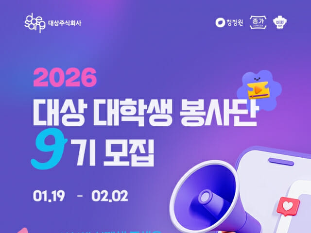 대상은 다음 달 2일까지 ‘대상 대학생 봉사단’ 9기를 모집한다고 밝혔다.