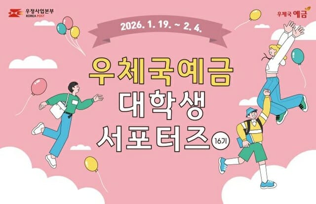 우정사업본부는 다음 달 4일까지 전국 대학생을 대상으로 ‘제16기 우체국예금 대학생 서포터즈’를 모집한다고 19일 밝혔다.
