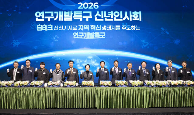 신년인사회는 ‘딥테크 전진기지로 지역 혁신생태계를 주도하는 연구개발특구’를 주제로 진행됐다. 지난해 말 강원특구가 새롭게 지정되며 6개 광역특구와 13개 강소특구 체계가 완성된 이후 처음 열리는 신년 행사다.