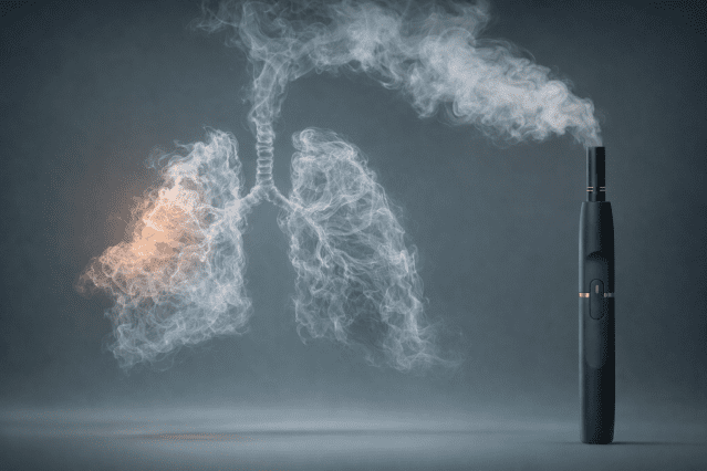 뿐만 아니다. 전자담배 사용자의 1초간 강제호기량은 평균 3.0L로 나타났다. 이는 비사용자의 3.5L보다 약 14% 감소한 수치다. 장기 코호트 분석에서는 전자담배 사용이 기존 흡연 여부와는 독립적으로 만성폐쇄성폐질환(COPD) 신규 발생 위험을 증가시키는 것으로 나타났다. 연초와 전자담배를 병행하는 이중 사용자는 비사용자 대비 COPD 위험이 약 3.9배 증가했다.